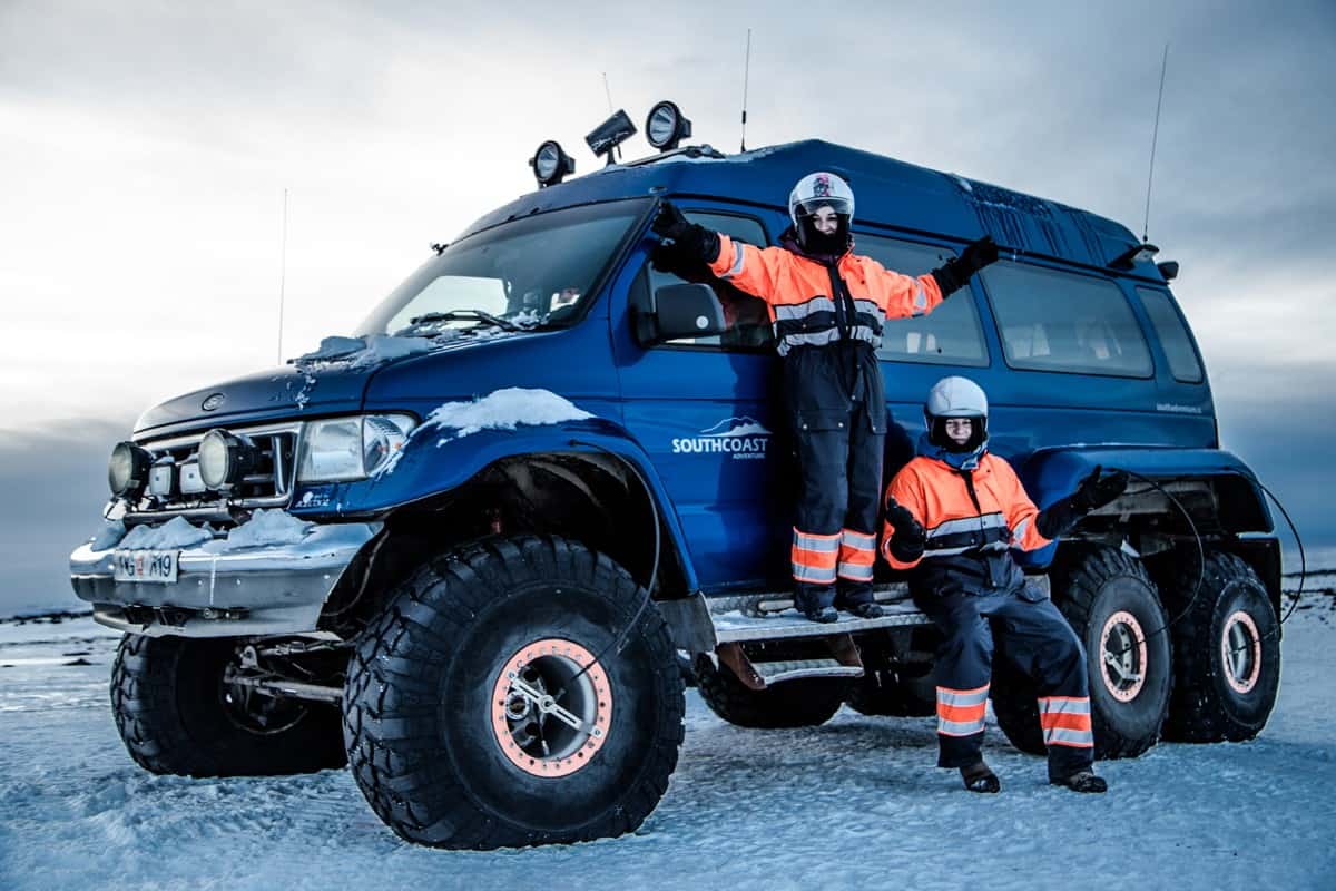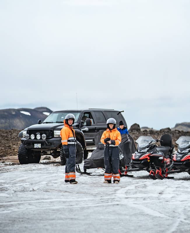Our adventure begins when we meet at our base camp close to the legendary Eyjafjallajokull Glacier. There, one of our friendly certified tour guides will provide you with all the equipment that you need and give you a short safety briefing. Then it’s time to ride a specially designed super jeep to the starting point of your snowmobile ride.