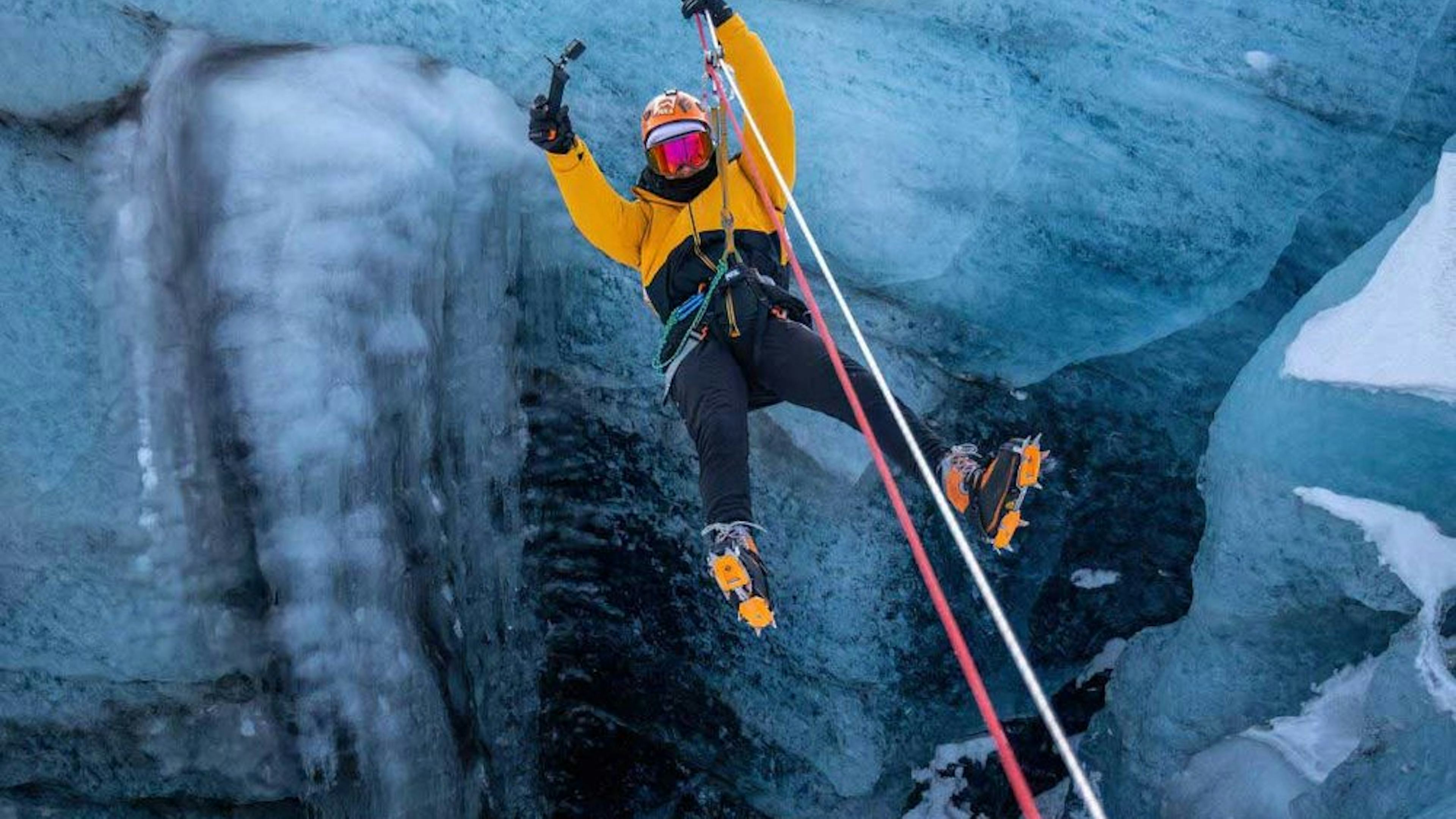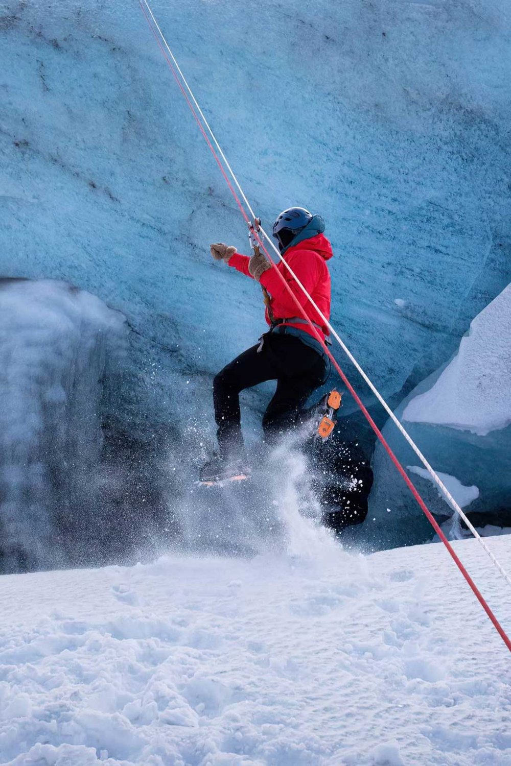 Soar across the glacier and over a vertical ice cave (called a Moulin) taking in panoramic views of the vast blue and white expanse below. Feel the wind rush through your hair as you glide above the frozen landscape, taking in the natural beauty of Iceland from a whole new perspective.